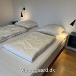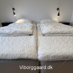 Hvert værelse har en dobbeltseng med tilhørende dyne og pude.
